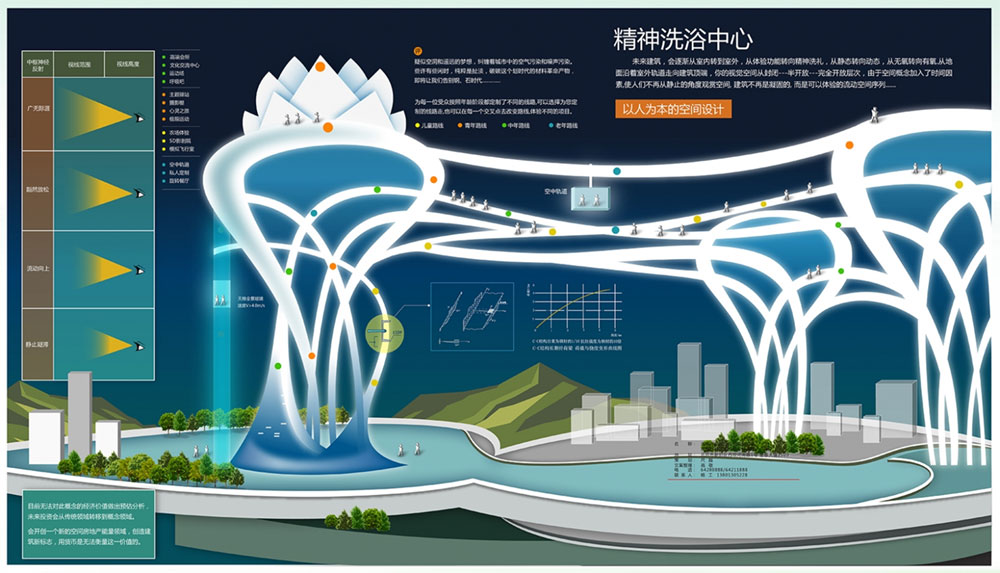 未来建筑,会逐渐从室内转到室外,从体验功能转向精神洗礼,从静态转向动态,从无氧转向有氧,从地面沿着室外轨道走向建筑顶端,你的视觉空间从封闭——半开放——完全开放层次,由于空间概念加入了时间因素,使人们不再从静止的角度观赏空间,建筑不再是凝固的,而是可以体验的流动空间序列